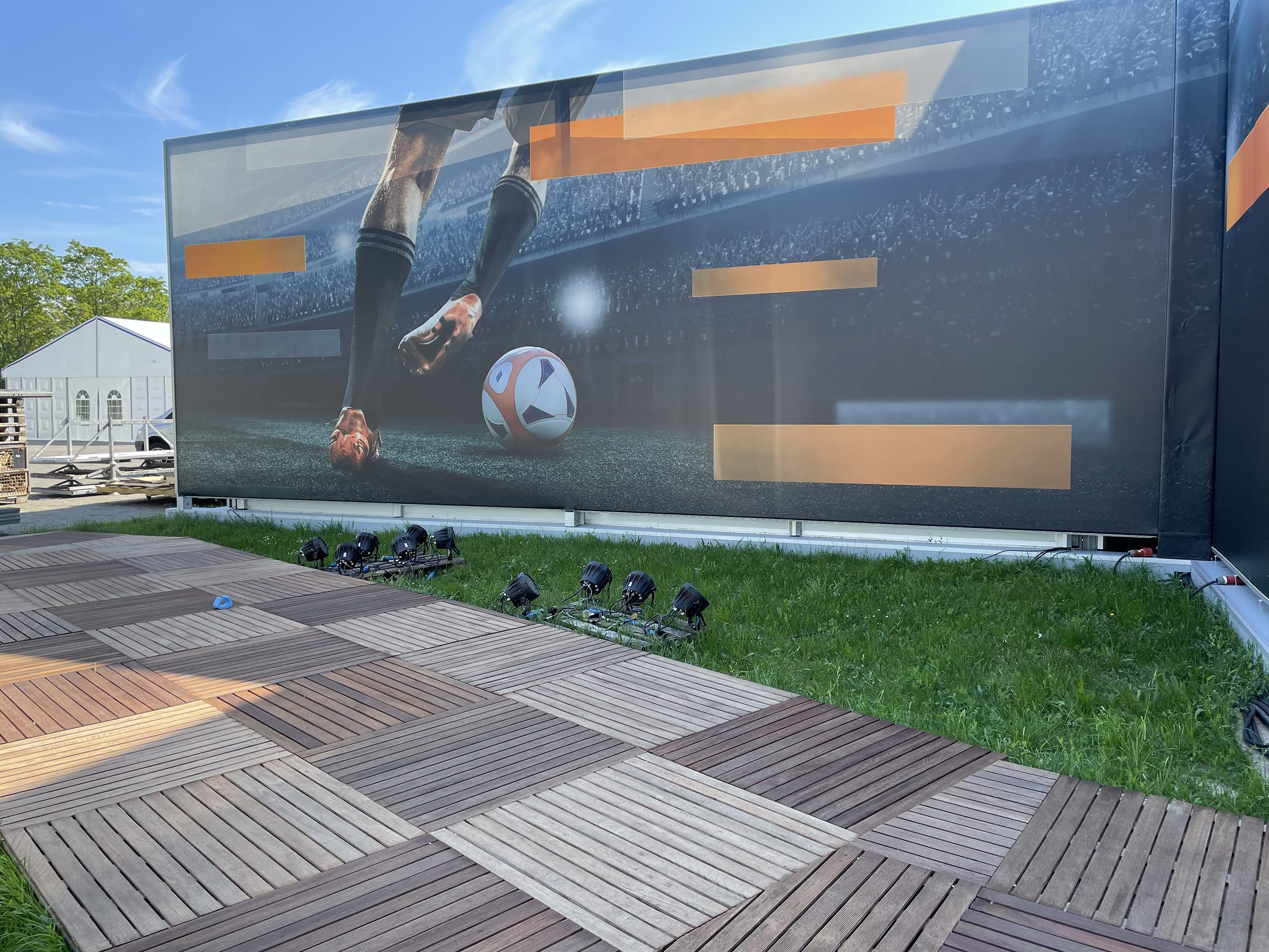 Voor het ZDF hebben we de opnamelocatie van het WK en EK voetbal voorzien van bankirai tegels. We hebben de looppaden helemaal op maat gemaakt. Schuine hoeken zijn geen probleem!